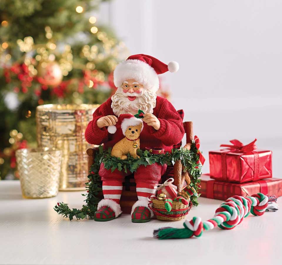 – Santa figurines, snow globes, and holiday gifts